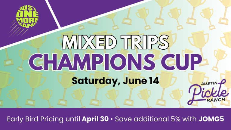 Just One More Game (JOMG Pickleball) delivers high-energy tournaments with efficient game play, unique formats, and great prizes.